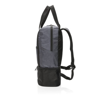 Plecak termoizolacyjny, wykonany z poliestru 500D, 2 przegrody zamykane na zamek błyskawiczny, dolna przegroda termoizolacyjna mieszcząca do 8 puszek 0,33l, plecak można łatwo przekształcić w torbę do noszenia, ślad węglowy produktu: 5,15 kg CO2